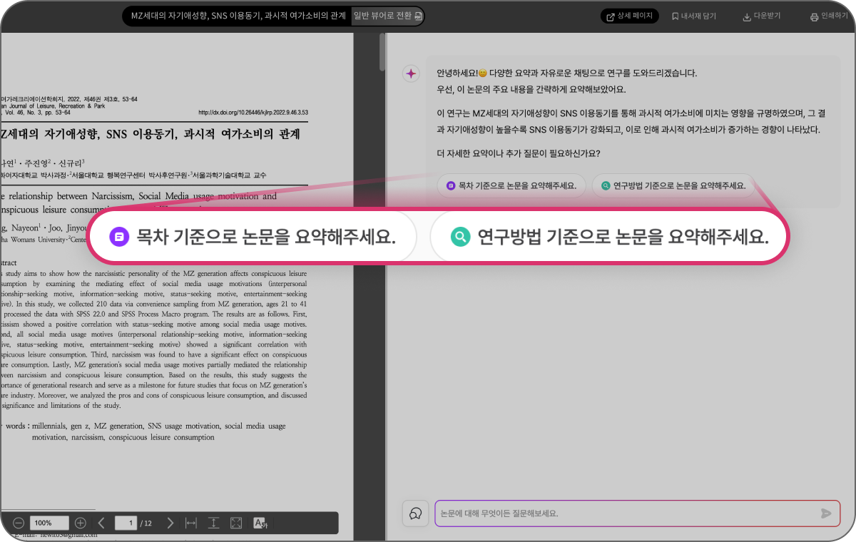 요약과 채팅, 주제 및 레퍼런스 추천까지