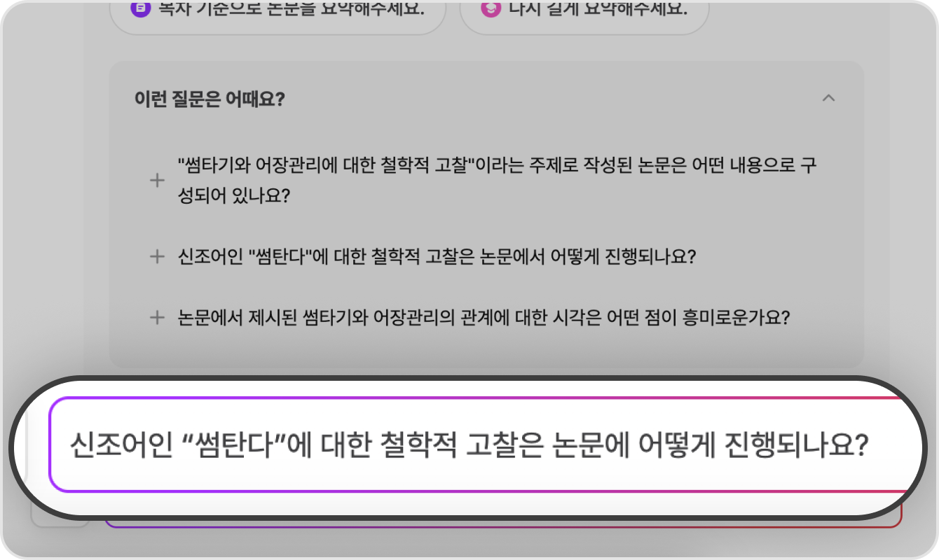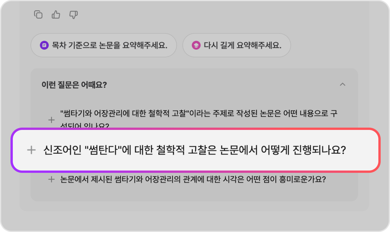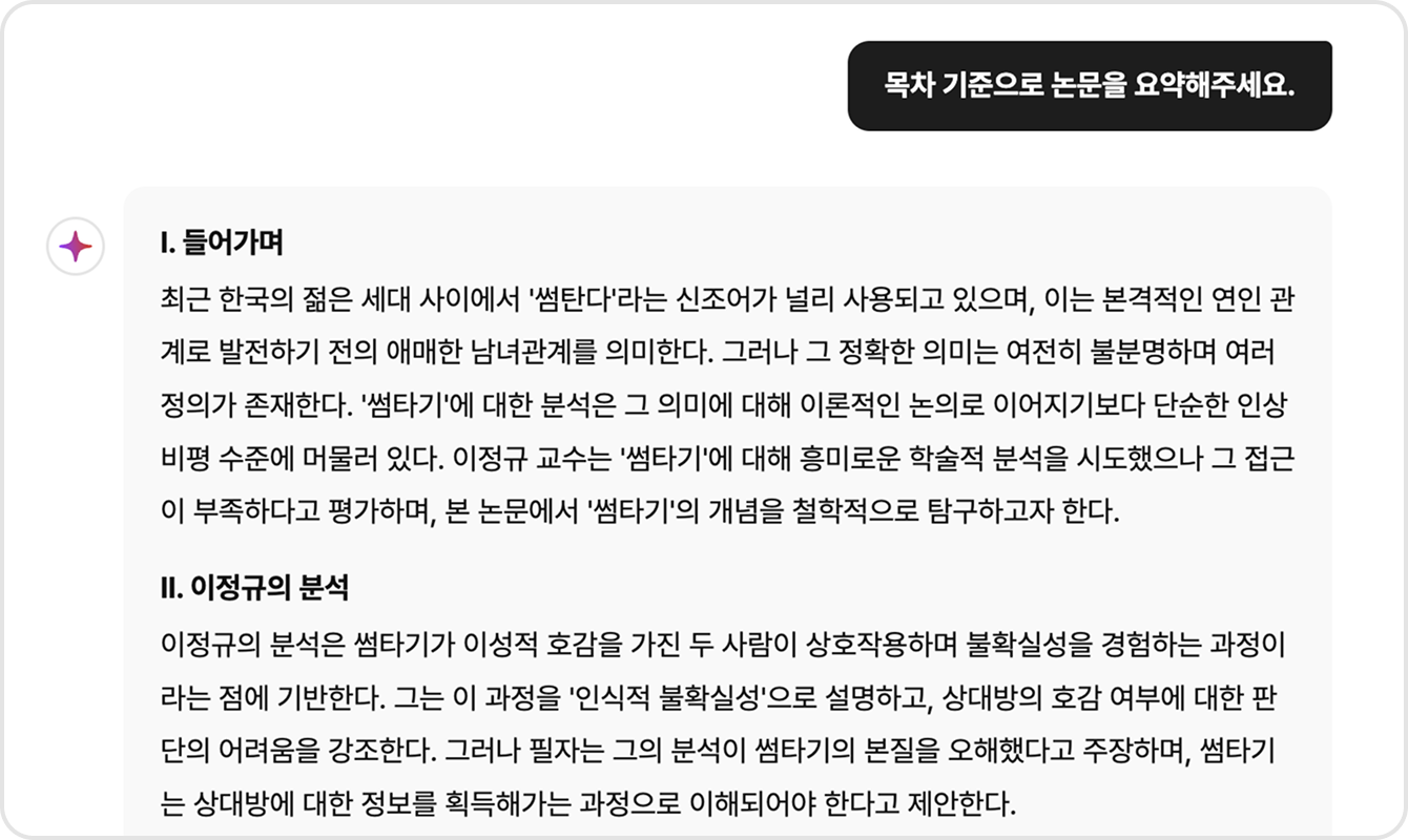 AI 뷰어는 고도화된 AI 모델을 활용해 문서의 내용을 분석하고, 의미를 이해한 뒤 답변을 생성해요. AI와 대화할 때, 본문에서 관련 정보를 빠르게 찾아주고, 필요한 내용을 명확하게 정리해 주죠. 또한, 답변의 근거가 되는 페이지도 함께 표시해 주기 때문에, 원문을 직접 확인하며 더 깊이 탐구할 수도 있어요!
